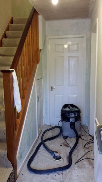 The Mirka sander is then used to sand the walls and the dust is extracted. The end result is a smooth finish where I have resurfaced the walls and very importantly without covering the house in a fog like dust like hand sanding would of caused.