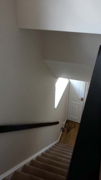 The photo gallery below shows how the walls have big patches of paint missing and lots of imperfections from the where the walls have had the wallpaper stripped off.